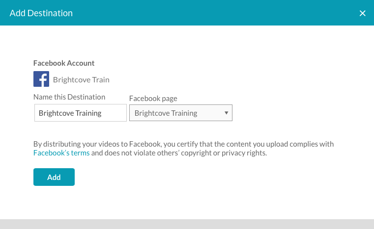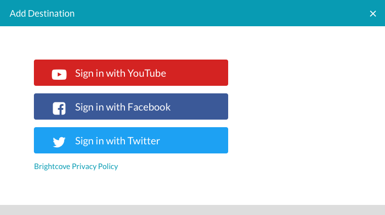 發佈目的地是您希望發佈 Video Cloud 影片的社交媒體帳戶/頁面。您必須先建立至少一個目的地,才能使用 Brightcove Social 將影片發佈至社交媒體帳戶。可以創建目的地,將視頻發佈到 YouTube,臉書和推特。