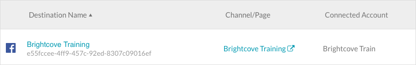 按一下目標名稱以編輯目的地。按一下「通道/頁面」欄中的連結,在其他瀏覽器標籤中開啟 Facebook 頁面。