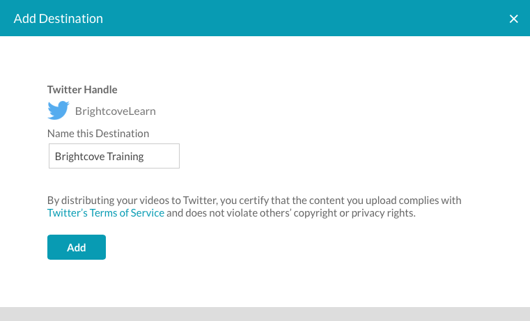 當您想要將影片發佈至 Twitter 動態消息時,請建立 Twitter 的目的地。若要建立 Twitter 目的地,請依照下列步驟執行。