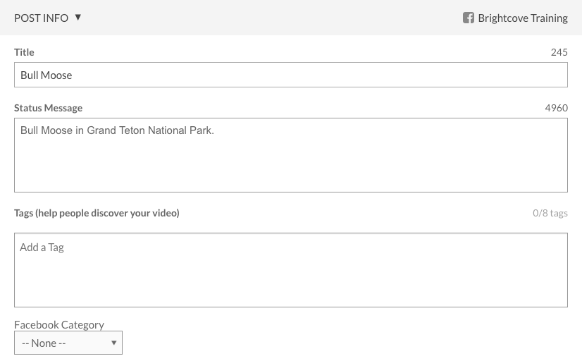 - 標題 -視頻標題(默認為視頻雲標題)。臉書將在 65 個字符後截斷