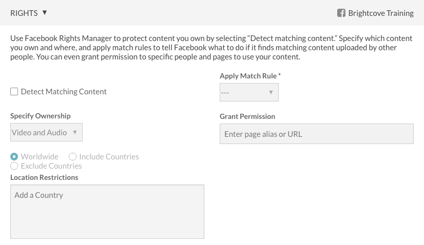 - 偵測符合的內容 -勾選以啟用 Facebook 版權管理。有關信息,請參閱Facebook文件。