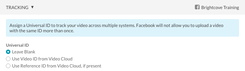 點擊追踪鏈接以分配通用ID,以跨系統跟踪視頻。以下是可用的通用 ID 選項: