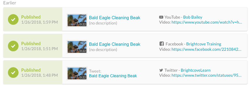點擊檢查狀態鏈接將顯示視頻發佈到的社交目的地的列表以及發布狀態。